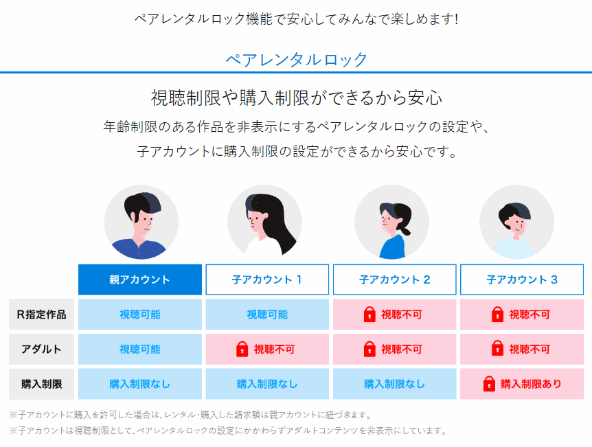 ペアレンタルロック機能で、視聴制限や購入制限ができます。